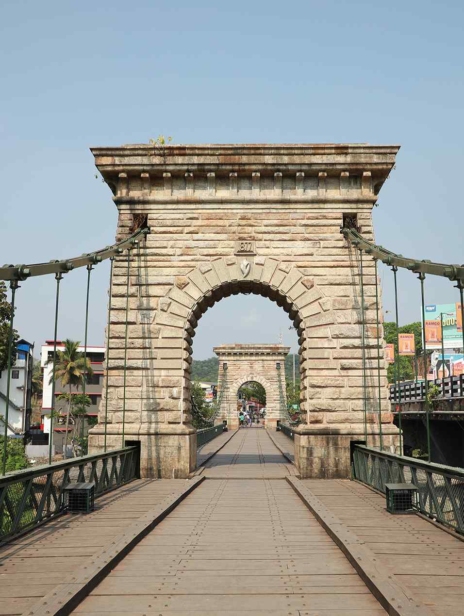 The Suspension Bridge at Punalur, is the only one of its kind in south India. Built in 1877 by Albert Henry across the Kallada River, this huge bridge was suspended by three spans, 400 feet long and was used for vehicular movement. Construction took more than six years. Now the bridge is only of archeological interest.